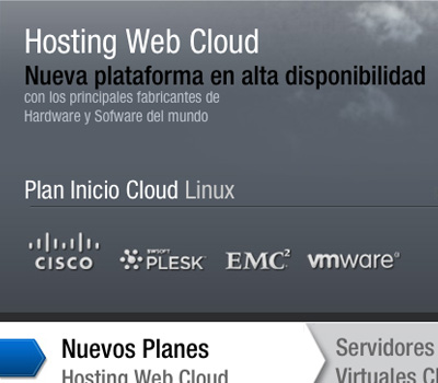 Plan Profesional Cloud: 2Gb espacio web y base de datos, Transferencia ilimitada, 20 buzones de correo x 1Gb x buzón, Php 5.0 + Perl + MySQL 5 ilimitadas. (por sólo 2,99€ al mes)